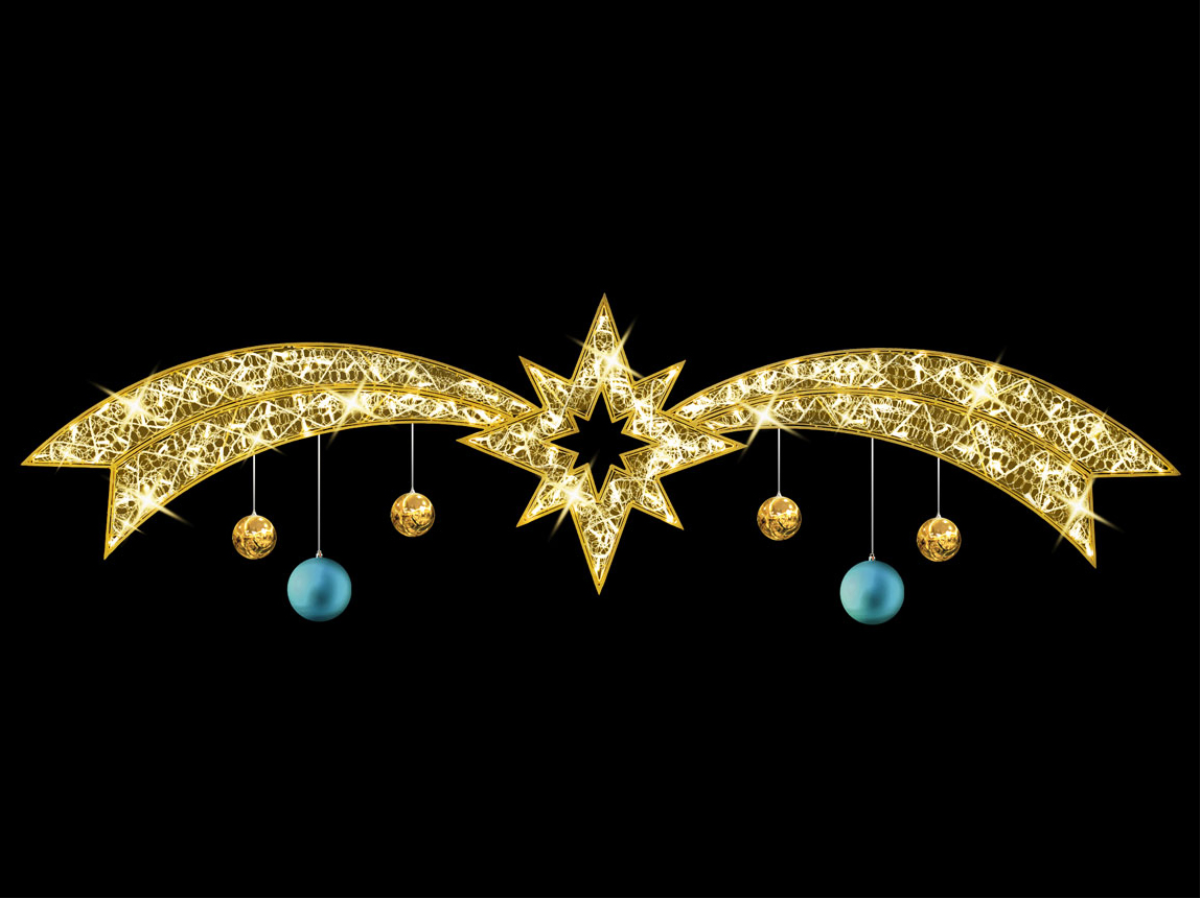 2D-Straßenfigur Komet mit Doppelschweif "Towson" Gold | Rahmenlos | LED warmweiß | BxH:325x80cm | 195 LEDs, davon 40 blinkend | 24V | 12W | inkl. Netzteil | IP44 |