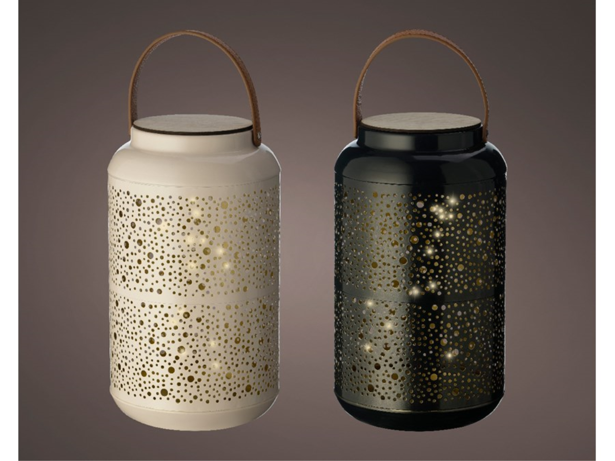 Batterie 3D-Laterne "Metall Antik Weiß" | H:31cm | d:18cm | 30 LEDs | warmweiß | Batterie: 3xAAA exkl. | IP20 | Timer: 6h an, 18h aus