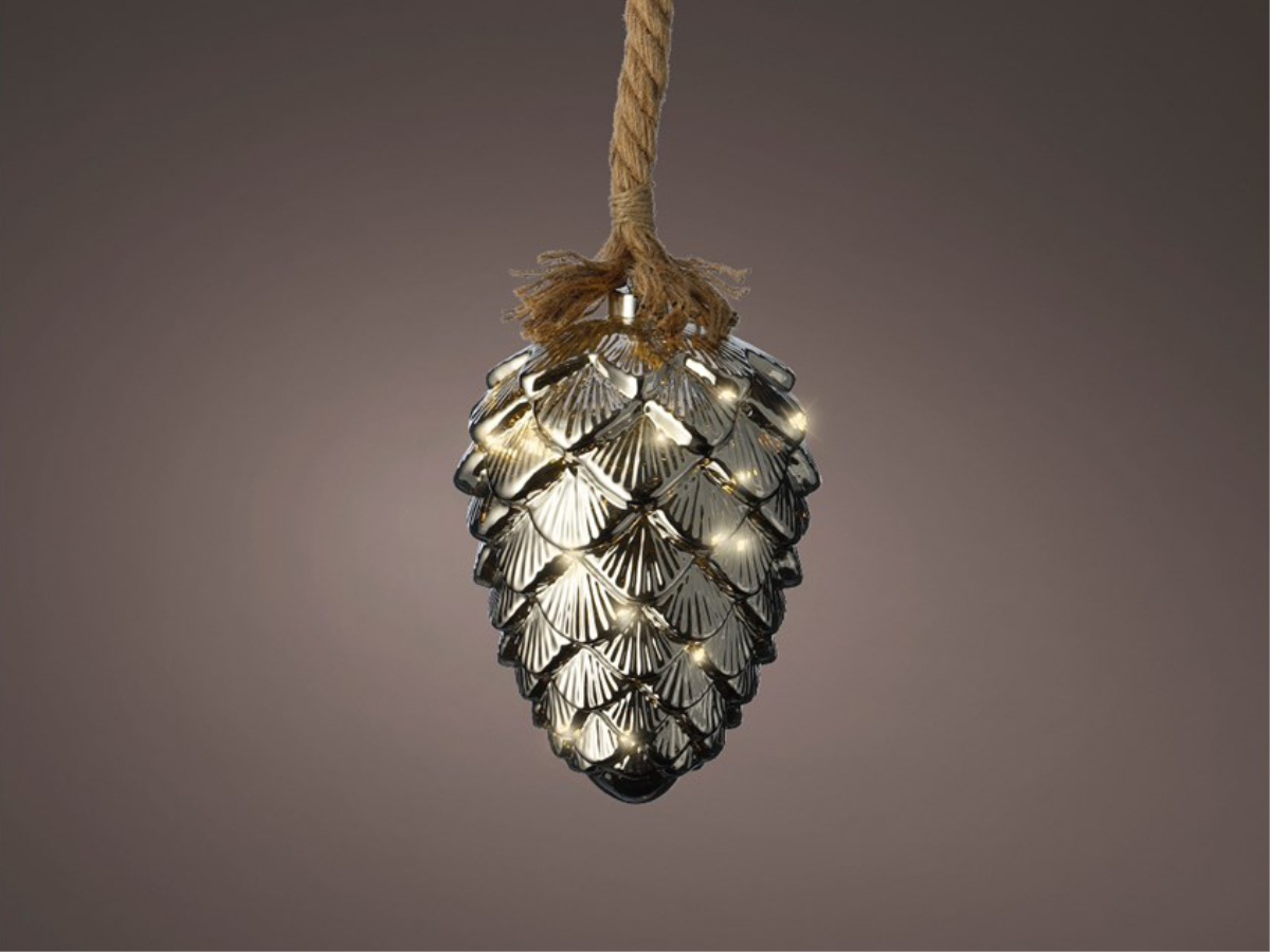 Batterie LED Zapfen Glas auf Seil | H: 21cm | d:15cm | 15 LEDs | warmweiß | Batterie: 3xAA exkl. | Timer: 6h an, 18h aus | IP20 |