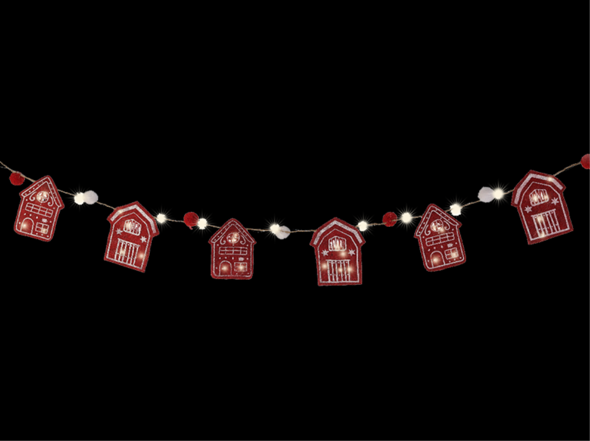 Batterie Lichterkette Lebkuchenhäuser | Rot | Länge: 2m | 40 LEDs | warmweiß | Batterie: 2xAA exkl. | Timer: 6h an, 18h aus | IP20 |