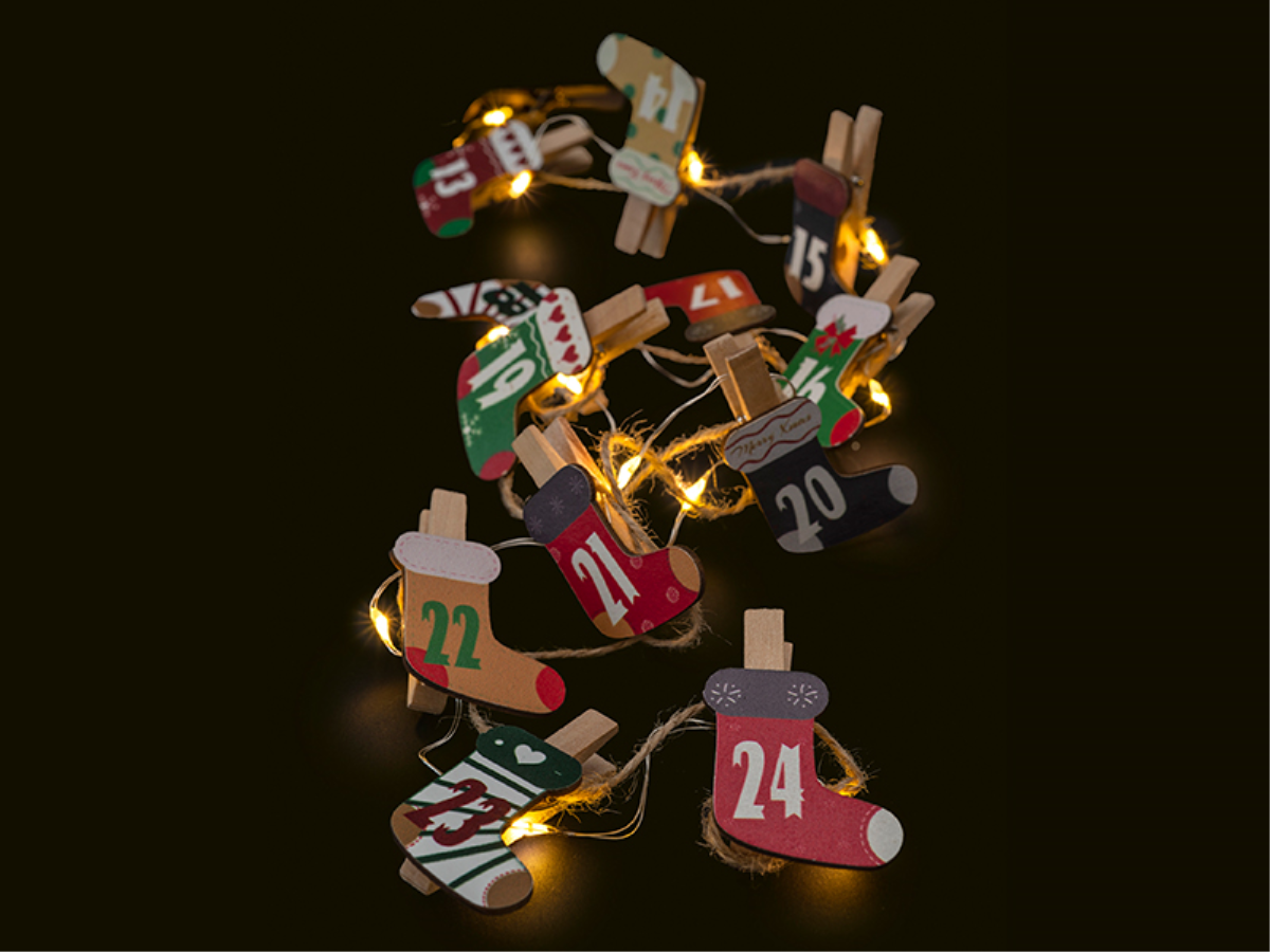 Batterie Lichterkette Weihnachtssocken | Länge: 1,8m | 25 LEDs | warmweiß | Batterie: 3xAA exkl. | Timer: 6h an, 18h aus | IP20 |