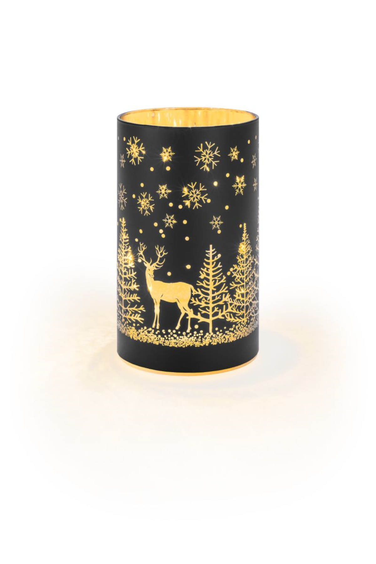 Batteriebetriebene 3D-Laterne "Winterwald" M | H: 16cm | d: 9cm | 12 LEDs | warmweiß | IP20 | Batterie: 3xAA exkl. | Timerfunktion: 6h ein - 18h aus