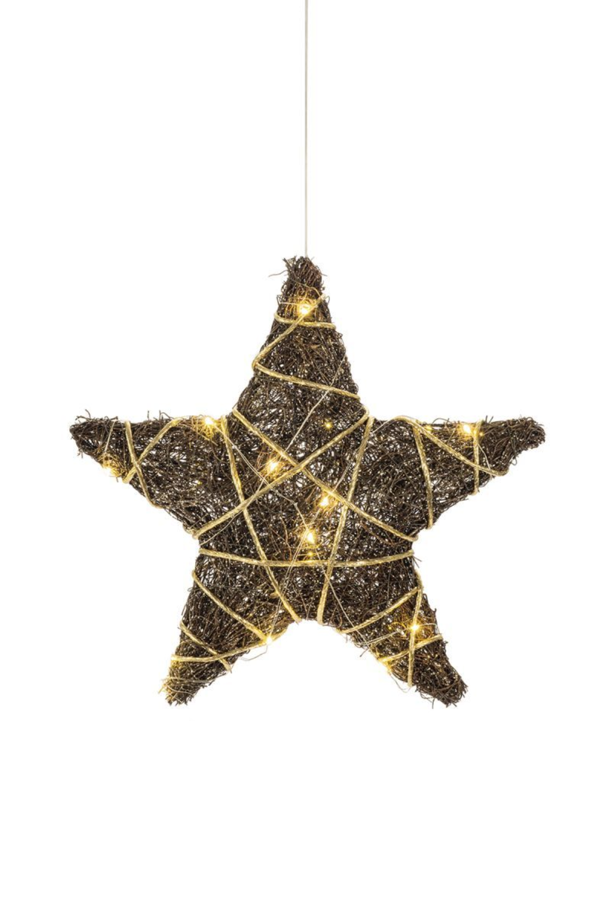 Batteriebetriebener Rattan-Stern | braun/gold | DxT: 30x8cm | warmweiß | IP20 | inkl. Timer: 6h on/18h off | Batterie: 3xAA exkl. |