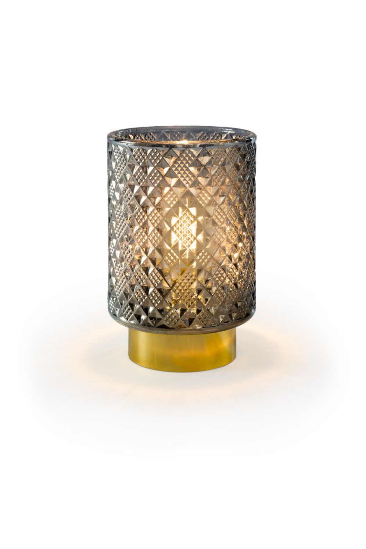 Batteriebetriebenes Ambiente Glaslicht | Smoky | H:15,5cm | d:10cm | 1 LED | warmweiß | IP20 | Batterie: 2xAA exkl. | Timerfunktion: 6h an, 18h aus |