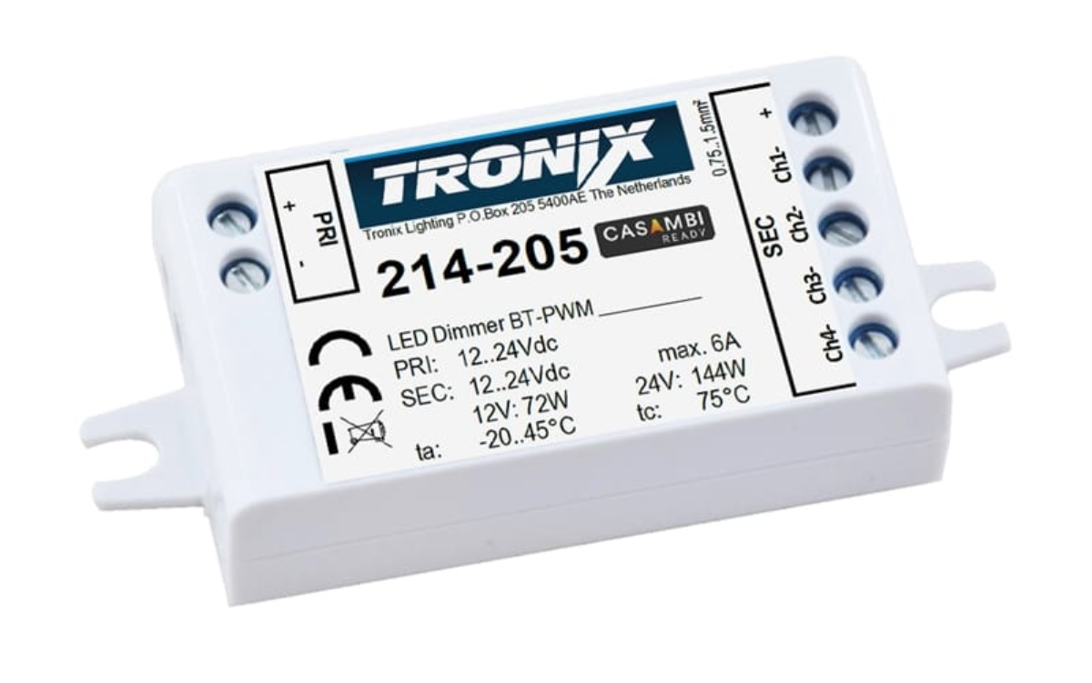 Casambi Funkdimmer für TW/ RGB/ RGBW/1-4 Kanäle | 12-24V | 4 Zonen | max. 4x 1500mA | LxBxH: 73x30x13mm | IP20 |