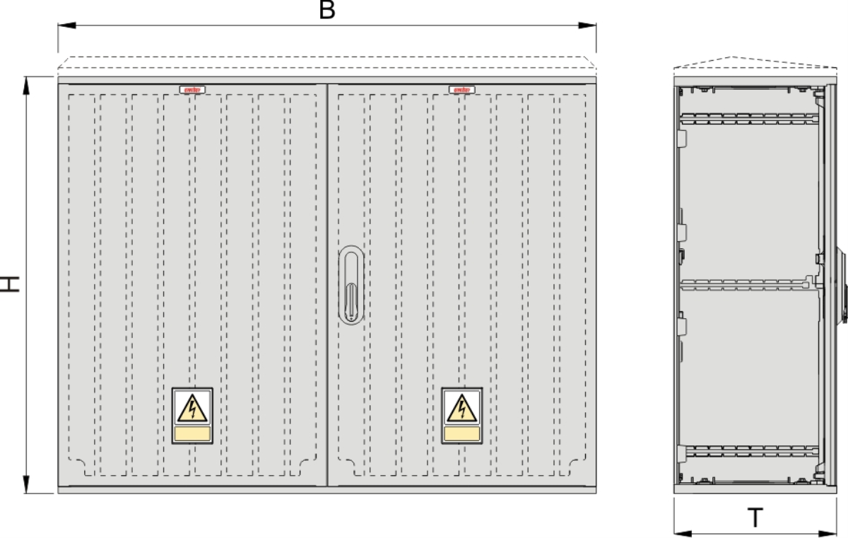 KSZi 106 x 80 Kasten GFK + Isolierstützer, gerippt, Schrägdach, 2-türig, 1 Sperre, BxHxT=1058x864x320