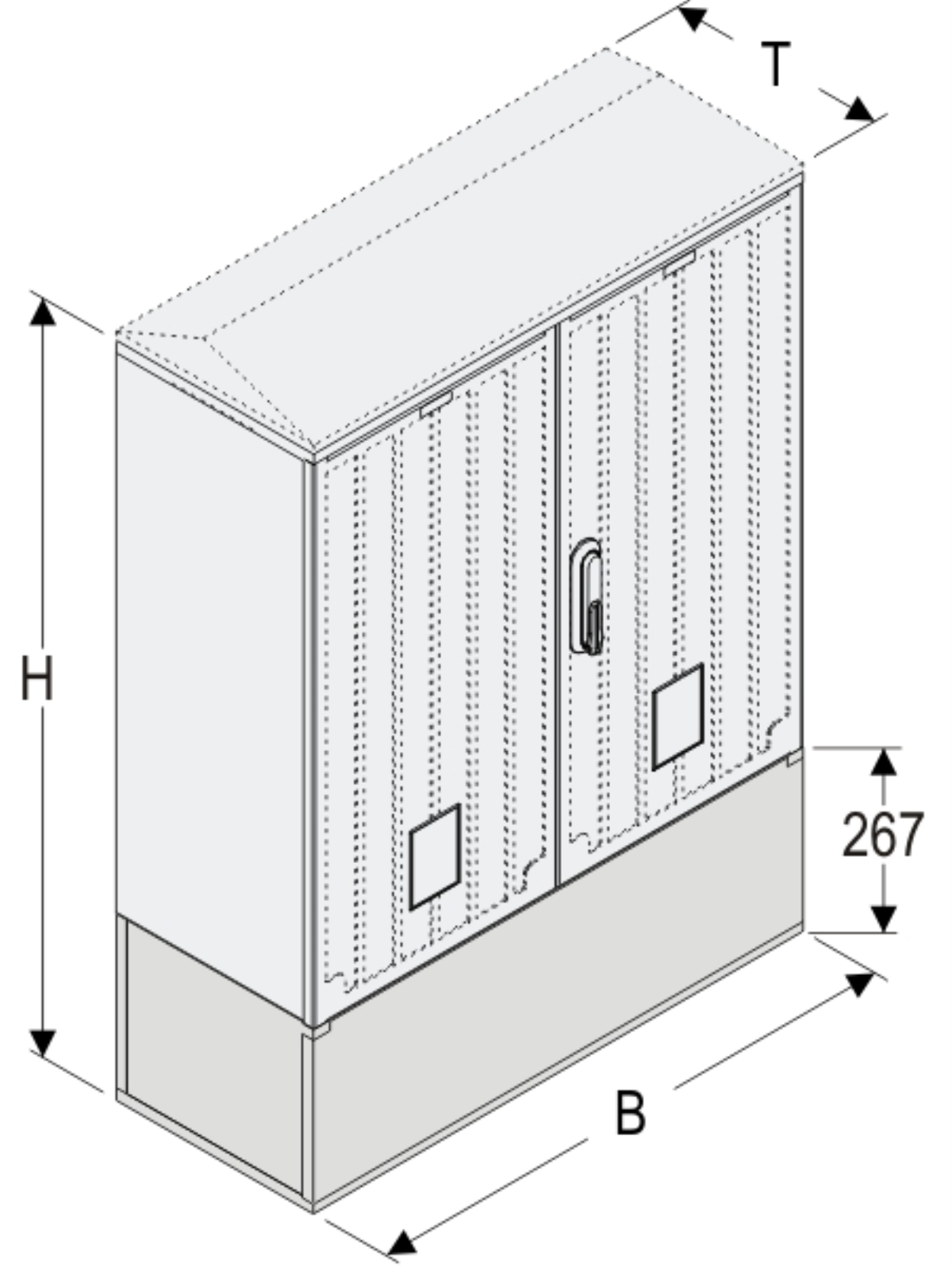 KSi+KK 80 x 80 Kasten GFK + Kurzsockel + Isolierstützer, glatt, Schrägdach, 2-türig, 1 Sperre, BxHxT=795x1108x320
