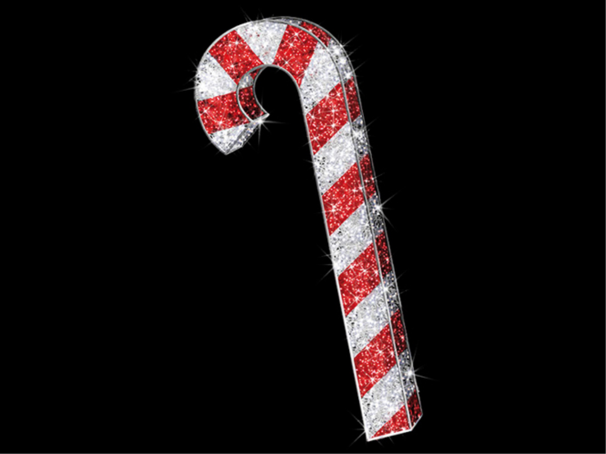 LED 3D-Motiv "Zuckerstange" Rot/Weiß | HxBxT: 220x77x20cm | 24V | 30W | kaltweiß | inkl. Netzteil & Bodenplatte | IP44 |