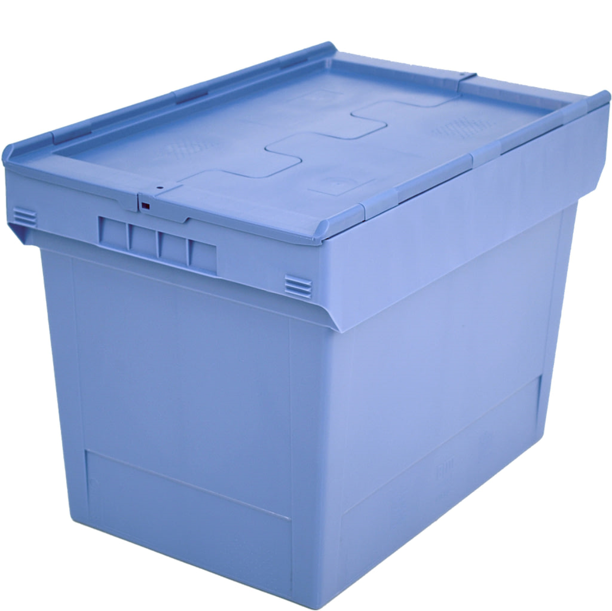Mehrwegbehälter mit anscharniertem Klappdeckel, stapelbar, taubenblau, Außenmaß: LxBxH= 610x400x440mm