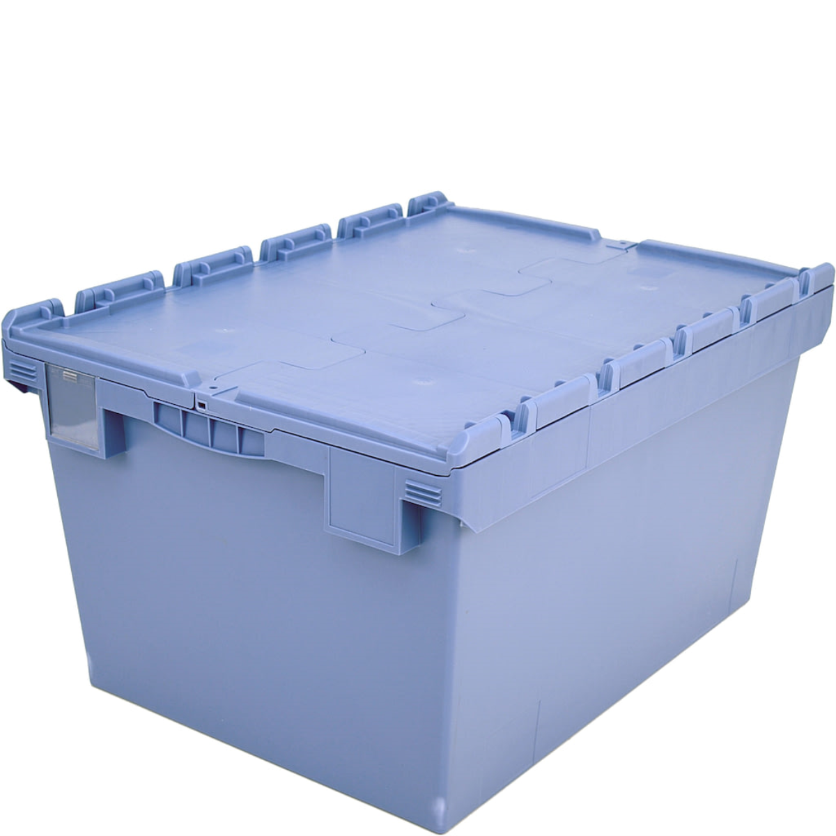 Mehrwegbehälter mit anscharniertem Klappdeckel, stapelbar, taubenblau, Außenmaß: LxBxH= 800x600x453mm