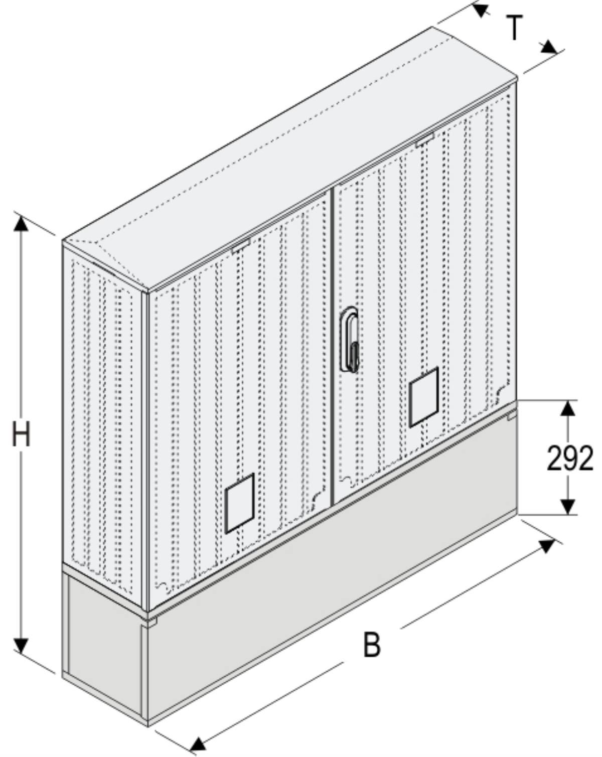 OSZi 106x80 + KP Kasten GFK mit Kurzsockel mit Trennwand + Isolierstützer, gerippt, Flachdach, 2-türig, 1 Sperre, BxHxT=1058x1089x245