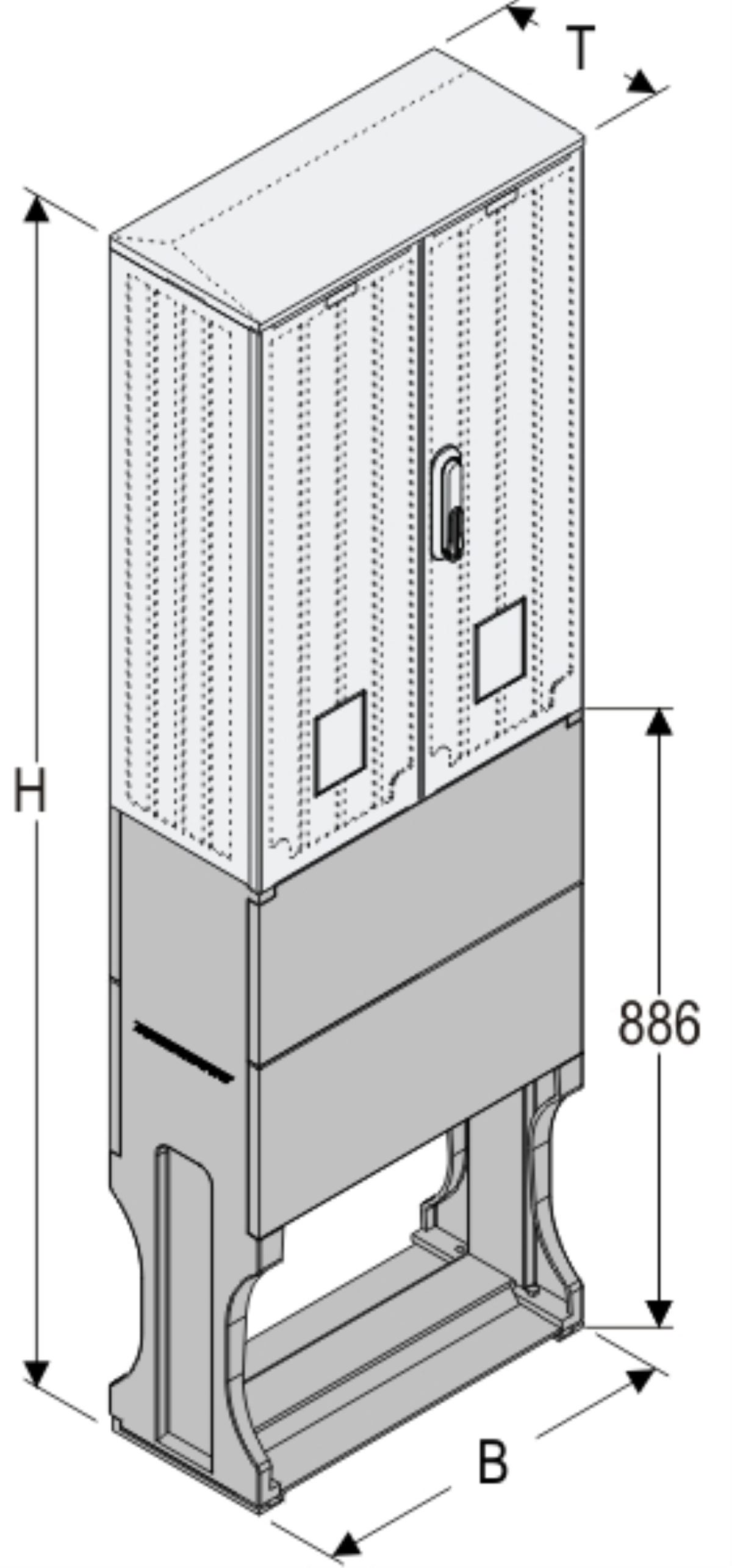 OSZi 53x80-2 + F Kasten GFK mit Sockel + Isolierstützer, gerippt, Flachdach, 2-türig, 1 Sperre, BxHxT=528x1683x245