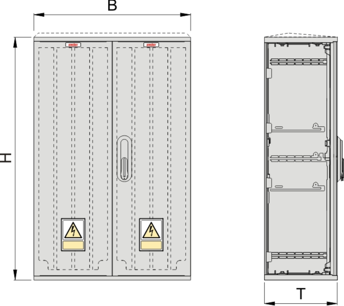 OSZi 53x80-2 Kasten GFK mit Isolierstützer, gerippt, Schrägdach, 2-türig, 1 Sperre, BxHxT=528x840x245
