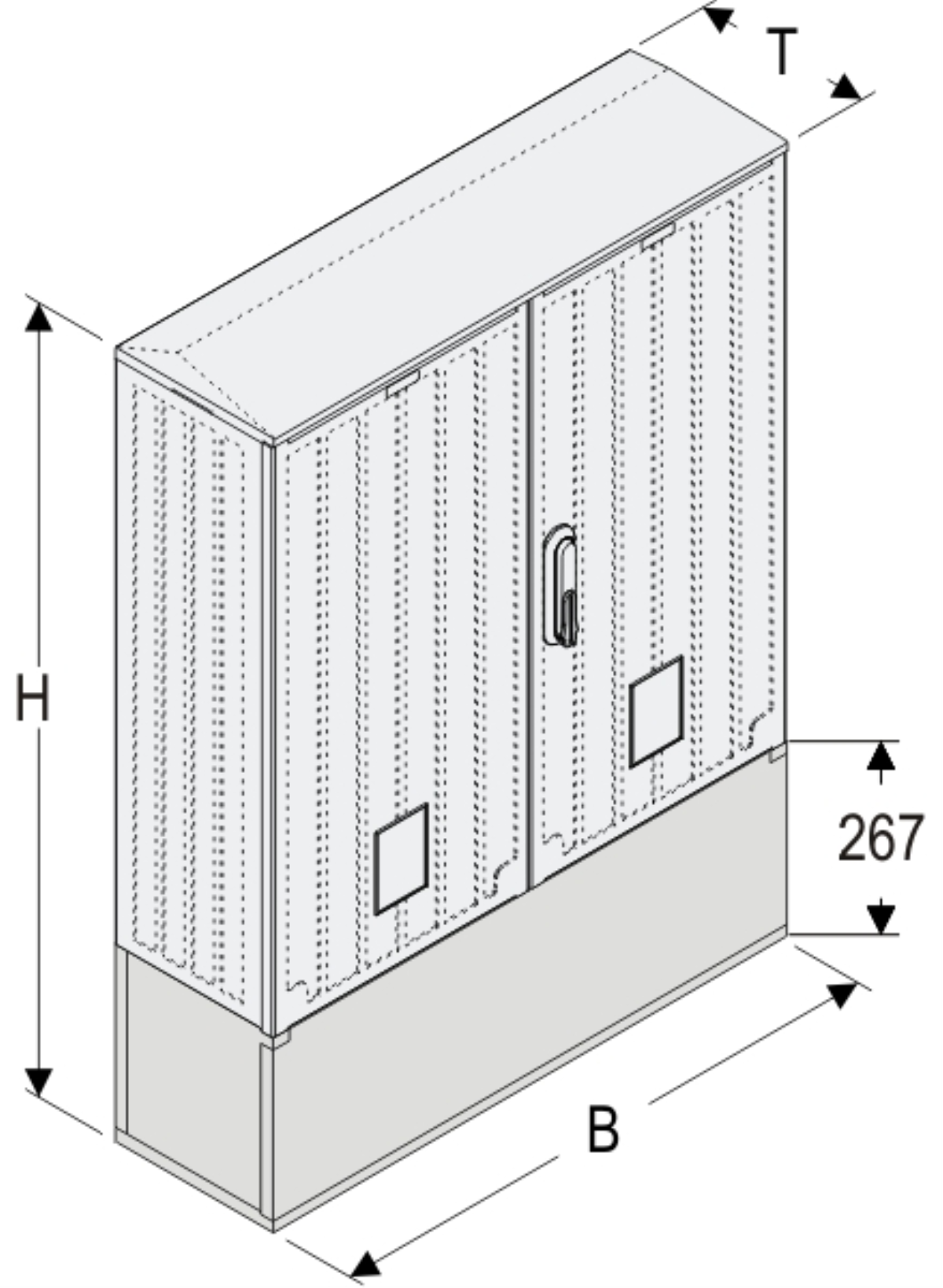 OSZi 80x80 + K Kasten GFK mit Kurzsockel + Isolierstützer, gerippt, Flachdach, 2-türig, 1 Sperre, BxHxT=795x1064x245