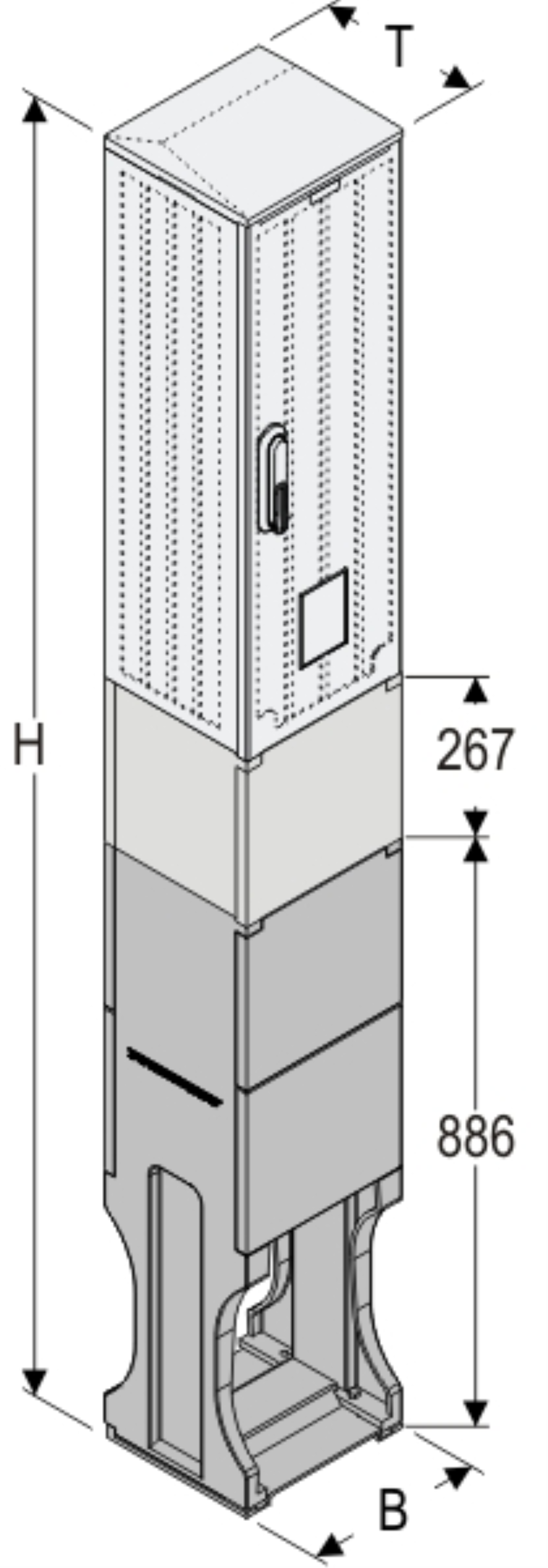 OSi 26x80 K + F Kasten GFK mit Kurzsockel + Sockel + Isolierstützer, glatt, Schrägdach, 1-türig, 1 Sperre, BxHxT=264x1947x245