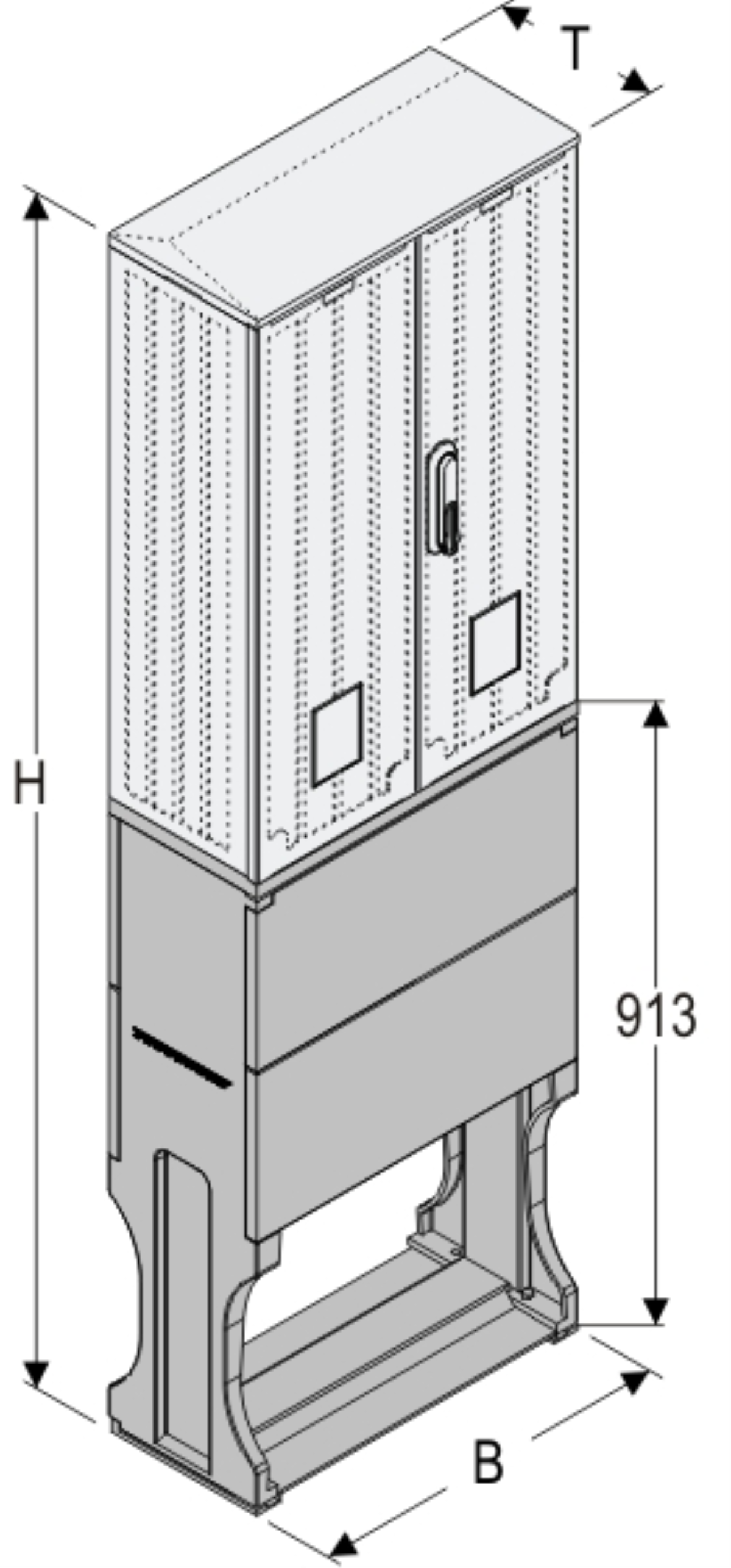 OSi 53x80-2 + FP Kasten GFK mit Sockel mit Trennwand + Isolierstützer, glatt, Schrägdach, 2-türig, 1 Sperre, BxHxT=528x1728x245