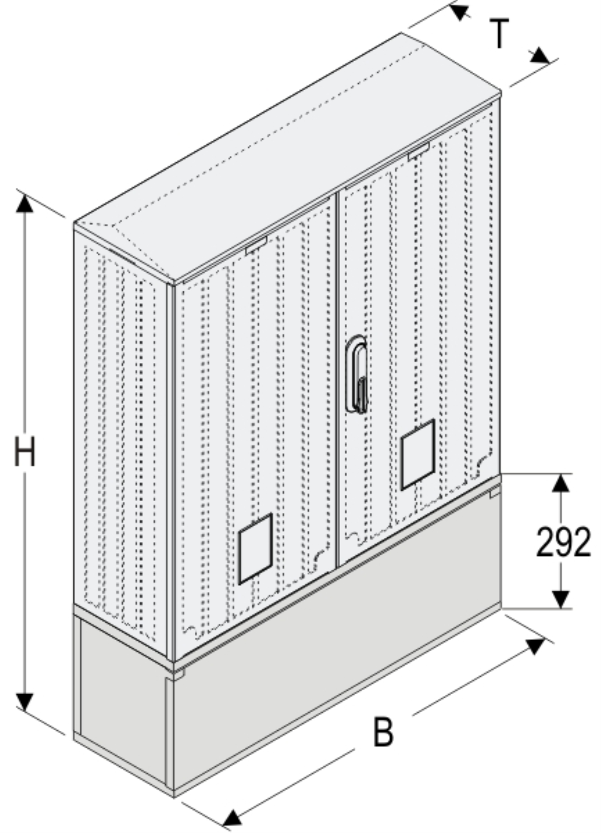 OSi 80x80 + KP Kasten GFK mit Kurzsockel mit Trennwand + Isolierstützer, glatt, Flachdach, 2-türig, 1 Sperre, BxHxT=795x1089x245