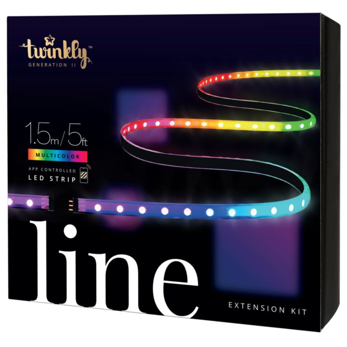 Twinkly Line Black | RGB LED Strip | Extension Kit | 90 LEDs | 1,5m | IP20 | mit APP steuerbar, Bluetooth+WiFi | Anschlußleitung: 2m | Kabel schwarz |