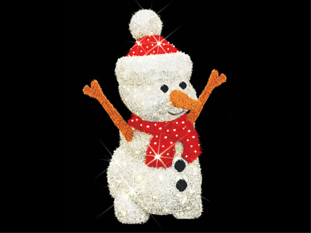 VERLEIH: LED 3D-Figur Schneemann "Happy - klein" | HxBxT: 115x95x50cm | 24V | 9W | eisweiß | 6500K | inkl. Netzteil | IP44 |