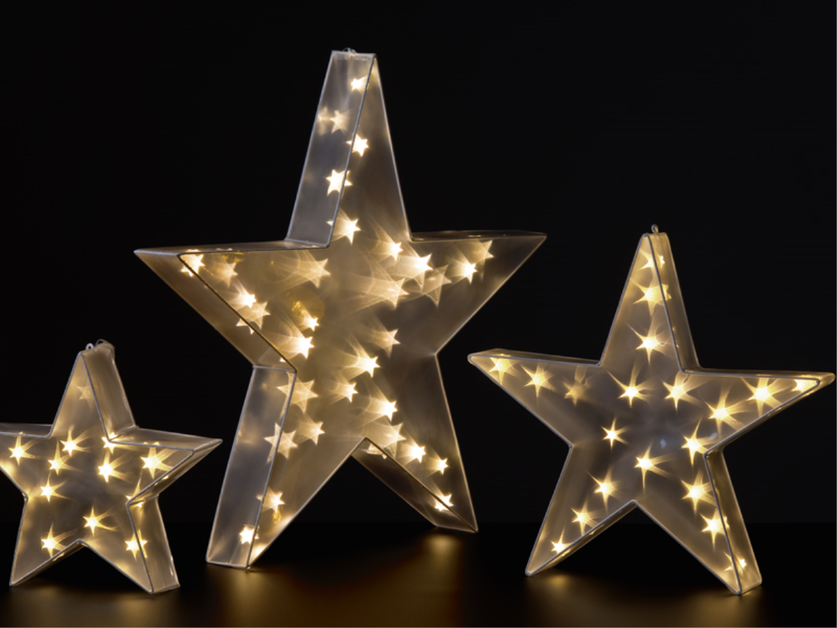 Weihnachtlicher Dekostern mit LED-Beleuchtung und 3D-Effekt, für innen